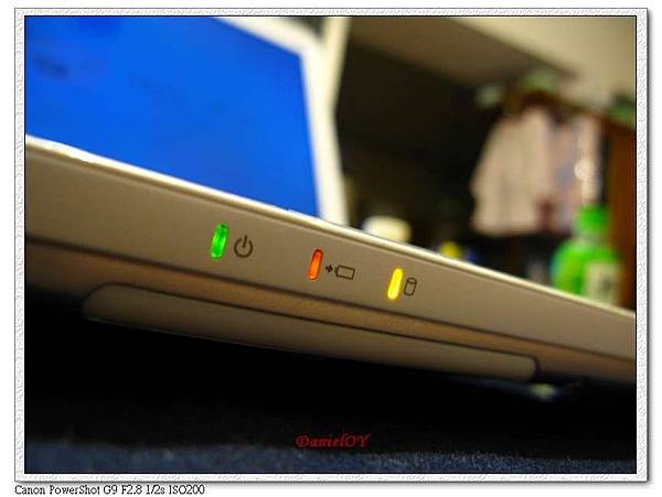 ▲中間燈號,由左至右分別為電源燈、電池燈號(紅色代表電池電量不足)、硬碟燈。