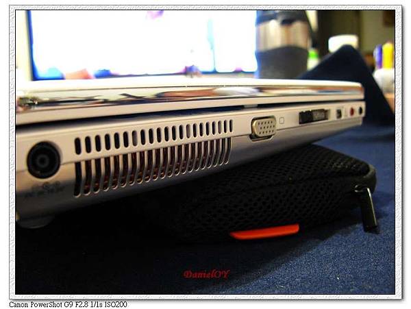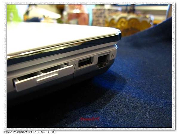 ▲右側,ExpressCard 的插槽,一般時候是有這片擋著,異物不至於掉入;其他是 USB & RJ-45 網路插孔。