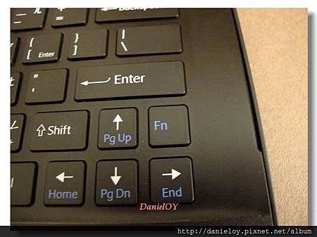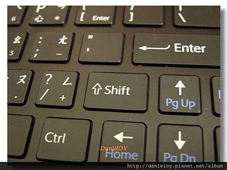 ▲很不習慣的是常用的 Shift 一般都在最靠右邊,而且是長長一條;這次卻縮短了,這就算了,旁邊多了方向鍵,在注音下要打逗號、句號常按錯,這,也要花時間習慣她。